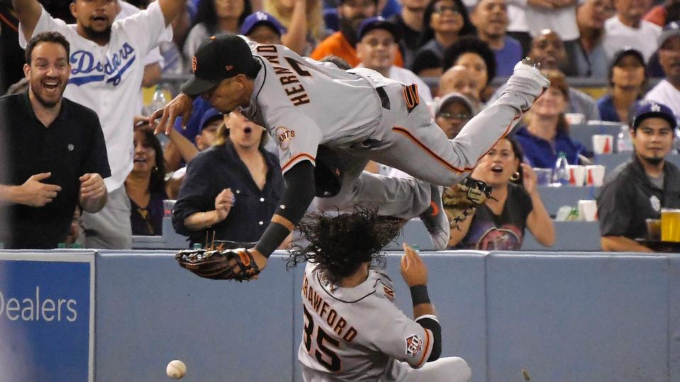 Brandon Crawford leaves game after colliding with Gorkys Hernández https://t.co/8TosDeYqf3 #SFGiants