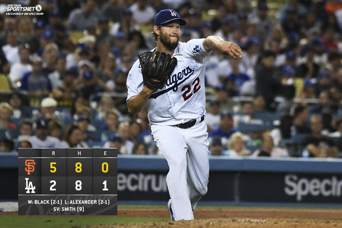 Kershaw and the #Dodgers can’t hold the #SFGiants as 4 runs are scored in the 9th!!